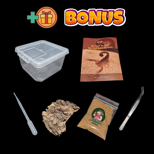 Tặng kèm: Tank sling, nhíp, ống nhỏ giọt, sách hướng dẫn, cork bark trang trí, cát.